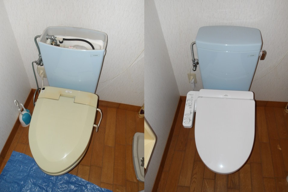 宝塚市でトイレ修理とウォシュレットの取替をさせていただきました。「トイレの洗浄レバーが折れて流せない。ウォシュレットも水がぽたぽた漏れて止まりません」とご連絡をいただきましたので、お修理に訪問いたしました。