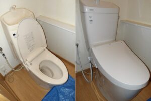 伊丹市でトイレの取替工事をさせていただきました。お客様より「シャワートイレの温水洗浄を使うと水が漏れてきます。毎日使うもので使用年数も年数も15年以上経過しているので新しくしたい」とご連絡をいただきました。