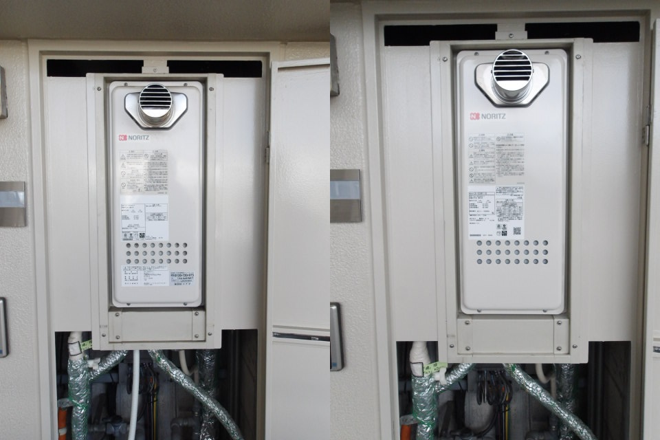 既設給湯器はPS扉内設置タイプの高温差し湯給湯器で、今回同等の後継機種でお見積もりをご提案させていただきご注文となりました。