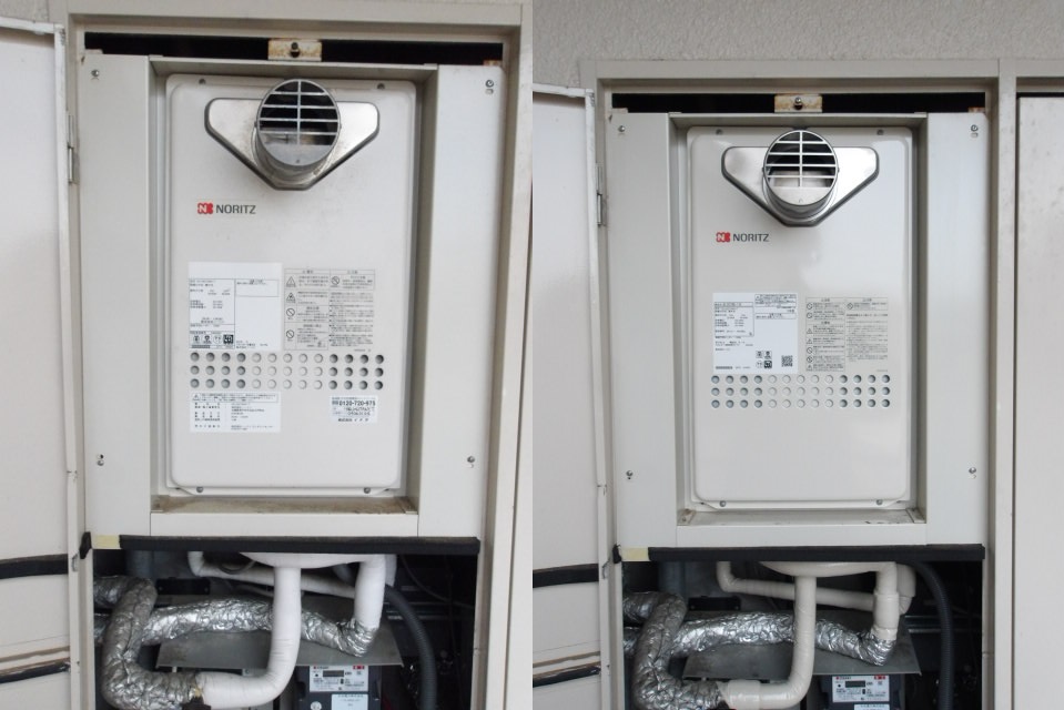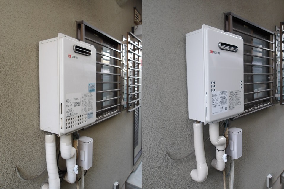 機種はノーリツ製の24号高温水供給式給湯器(PS扉内設置形)のGQ-2427AWX-T-DX(10年間修理保証付き)への交換となりました。