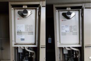 池田市のマンションで、PS設置のガス給湯器を交換しました。