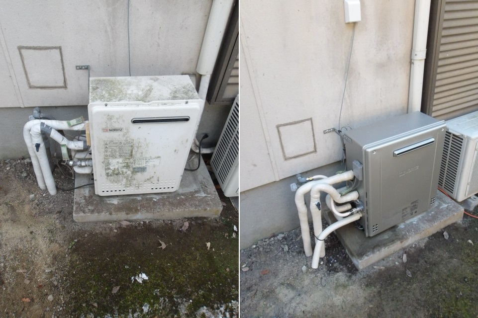 オーナー様へ設置後20年経過している湯沸し器の為、修理部品が廃止されており取替が必要の旨報告させていただき新しい湯沸かし器への交換となりました。