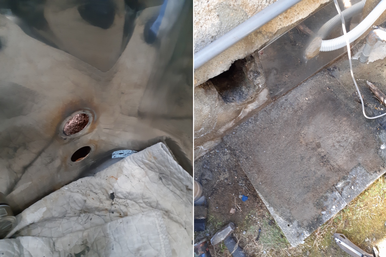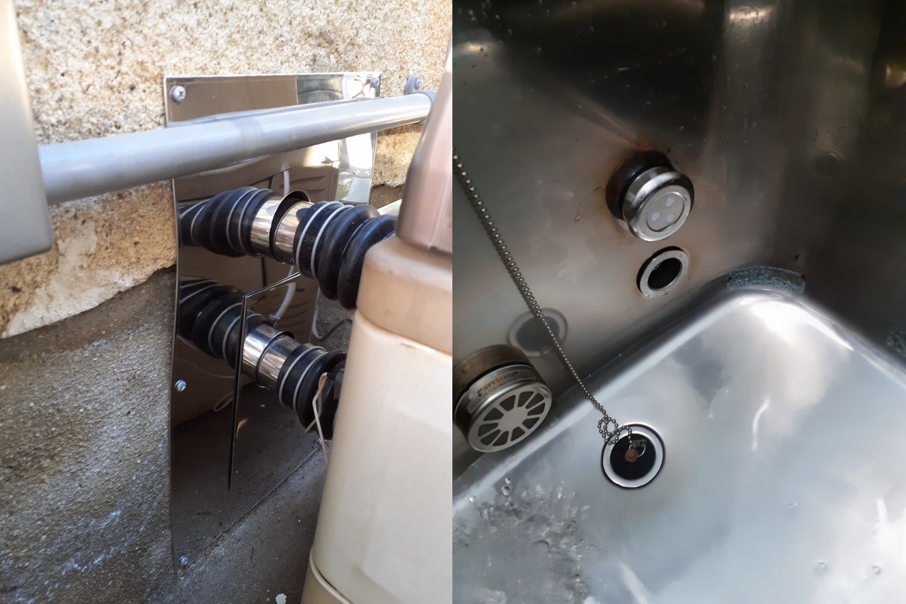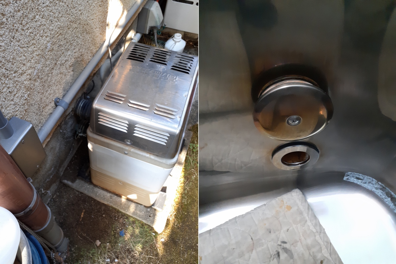 ①まず浴槽と接続パイプの連結を外し②次に外釜を取り外し③パイプの埋まっている基礎部分のハツリ作業④新しいパイプへの取替をし⑤専用のステンレス化粧プレートで基礎部分の閉塞外⑥釜の復旧をし⑦水漏れ点検後完了いたしました。