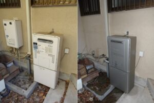 今回お客様より「現在温水暖房用の熱源機と、給湯器が別々についていますが、どちらの器具も古くなりましたので交換をしてほしいです。2台設置するとスペースがもったいないので、暖房付きのエコジョーズに交換してもらって1台にまとめてほしいです」とご連絡をいただきました。
