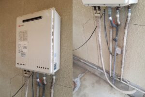 お客様に診断の結果をお伝えし、19年前に製造された給湯器であった為寿命時期の説明と新しい給湯器への交換を提案させていただき交換となりました。