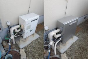 機種は大阪ガスの135-T250A(パーパス製GH-S2700ZWH)より、代替給湯器はノーリツ製エコジョーズのGTH-C2460SAW3H-1となります。
