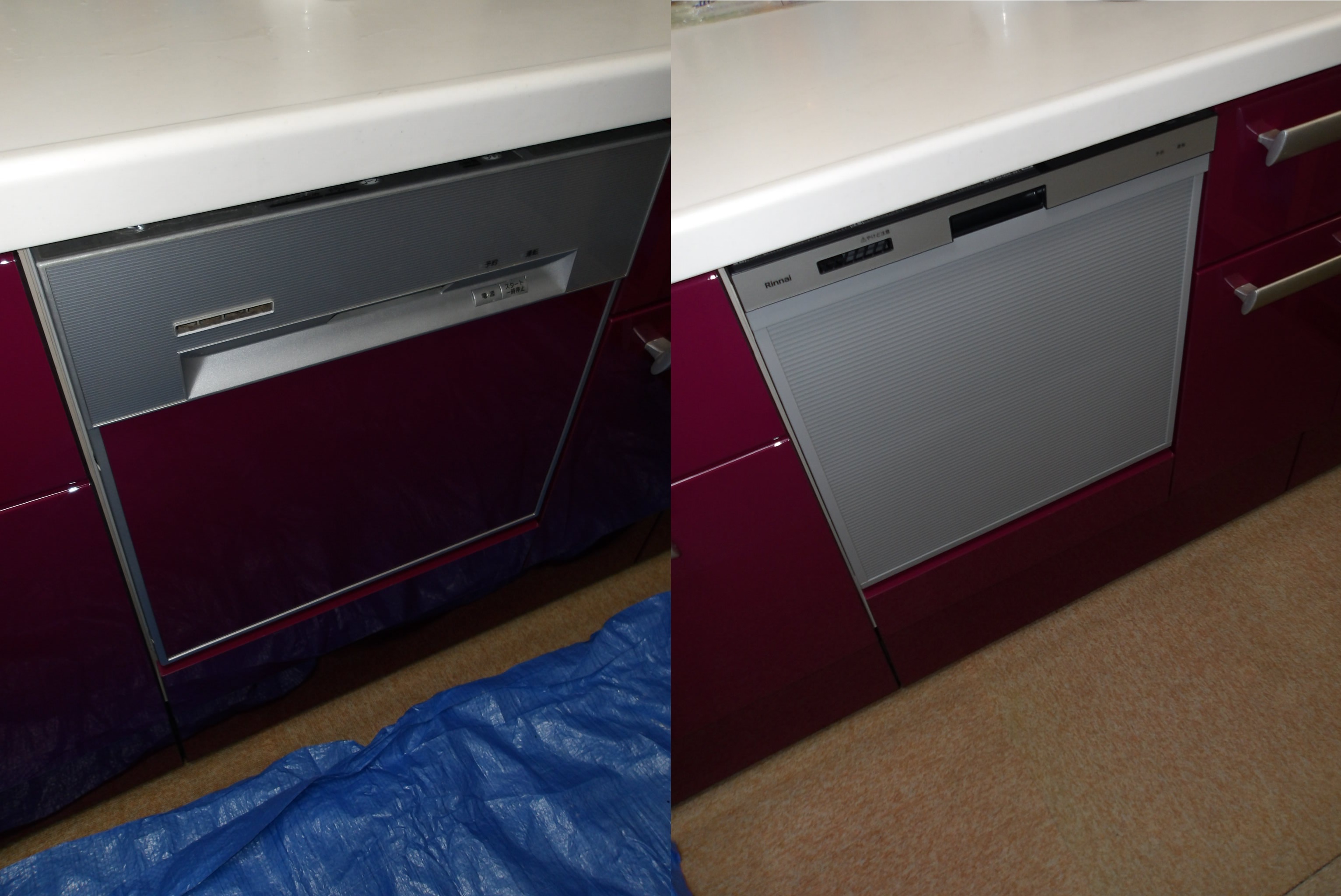 NFB4515PMSRより、リンナイの食器洗い乾燥機のRSW-405AA-SVへ交換