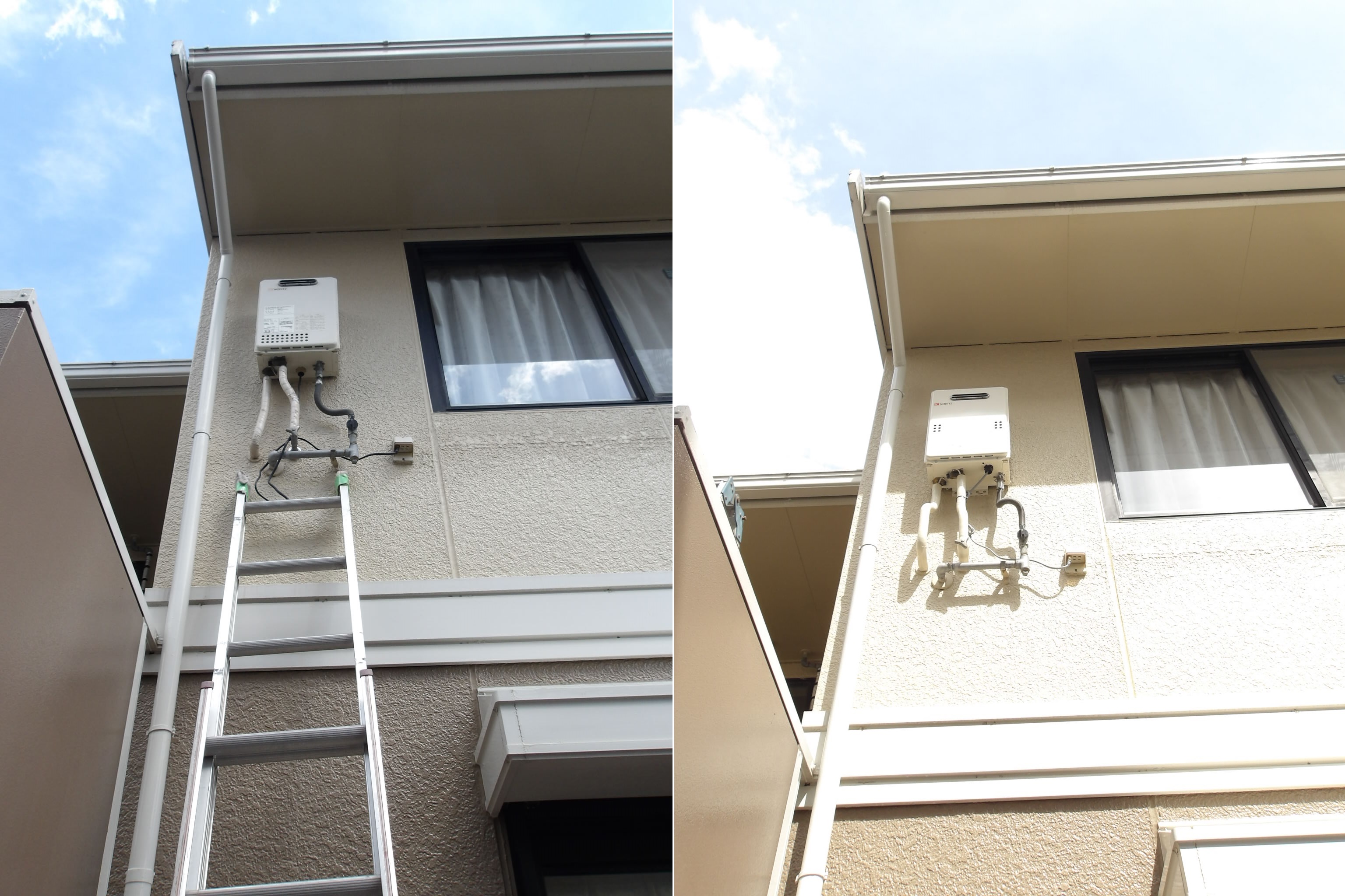 今回のご依頼は、賃貸ハイツのオーナー様より「賃貸ハイツで2階の壁についている給湯器から水がポタポタ漏れてきています。設置してから10年以上経過している給湯器なので新しい給湯器へ交換してください」との事でご連絡をいただきました。
