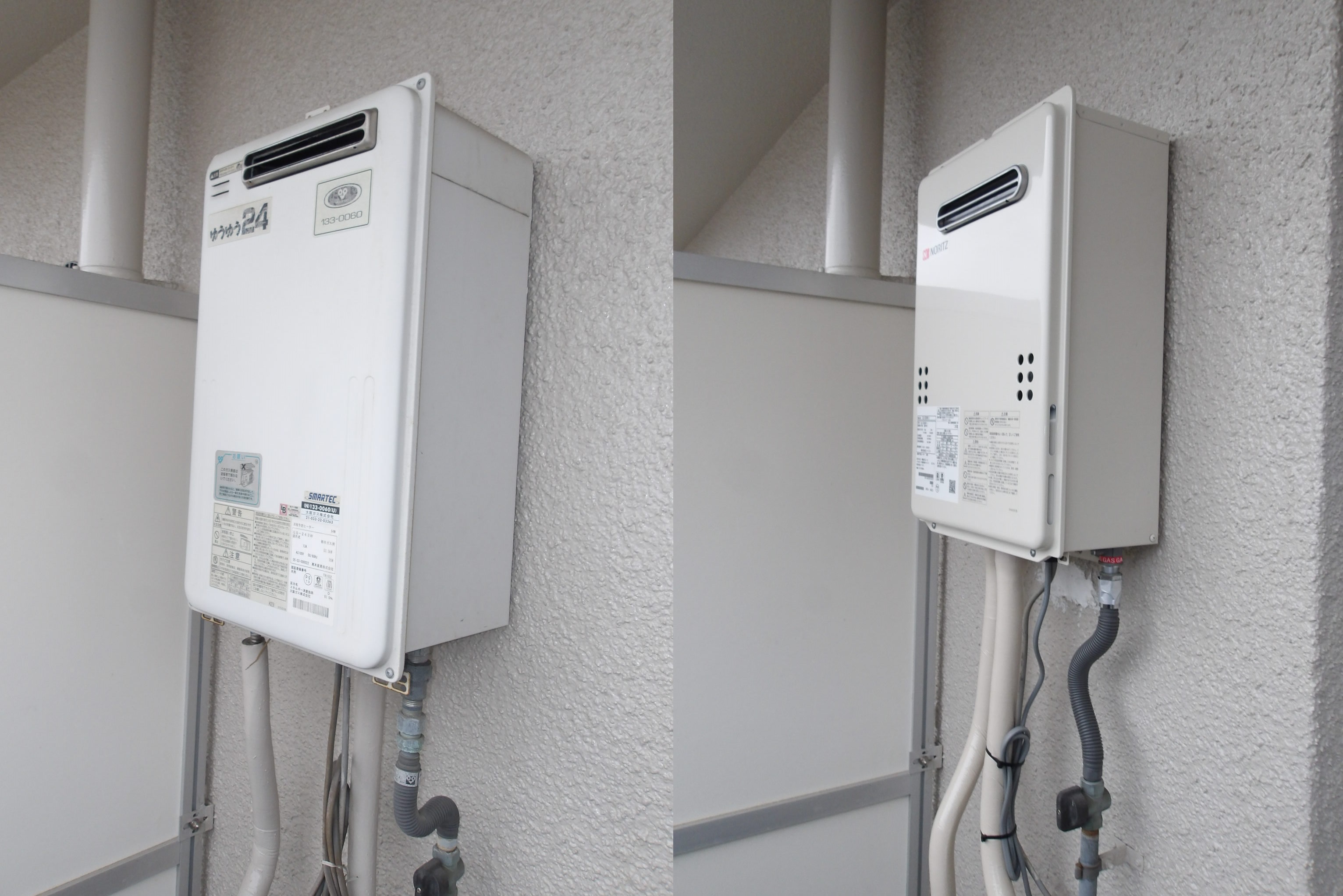 今回パーパス製の20号給湯器でGS-203Wより、ノーリツ製のGQ-2039WS-1への取替となりました。