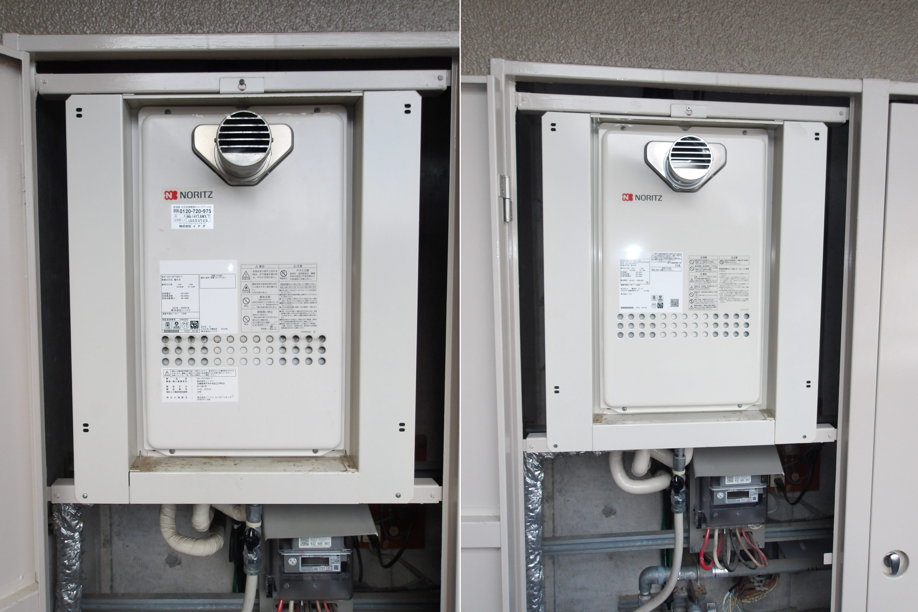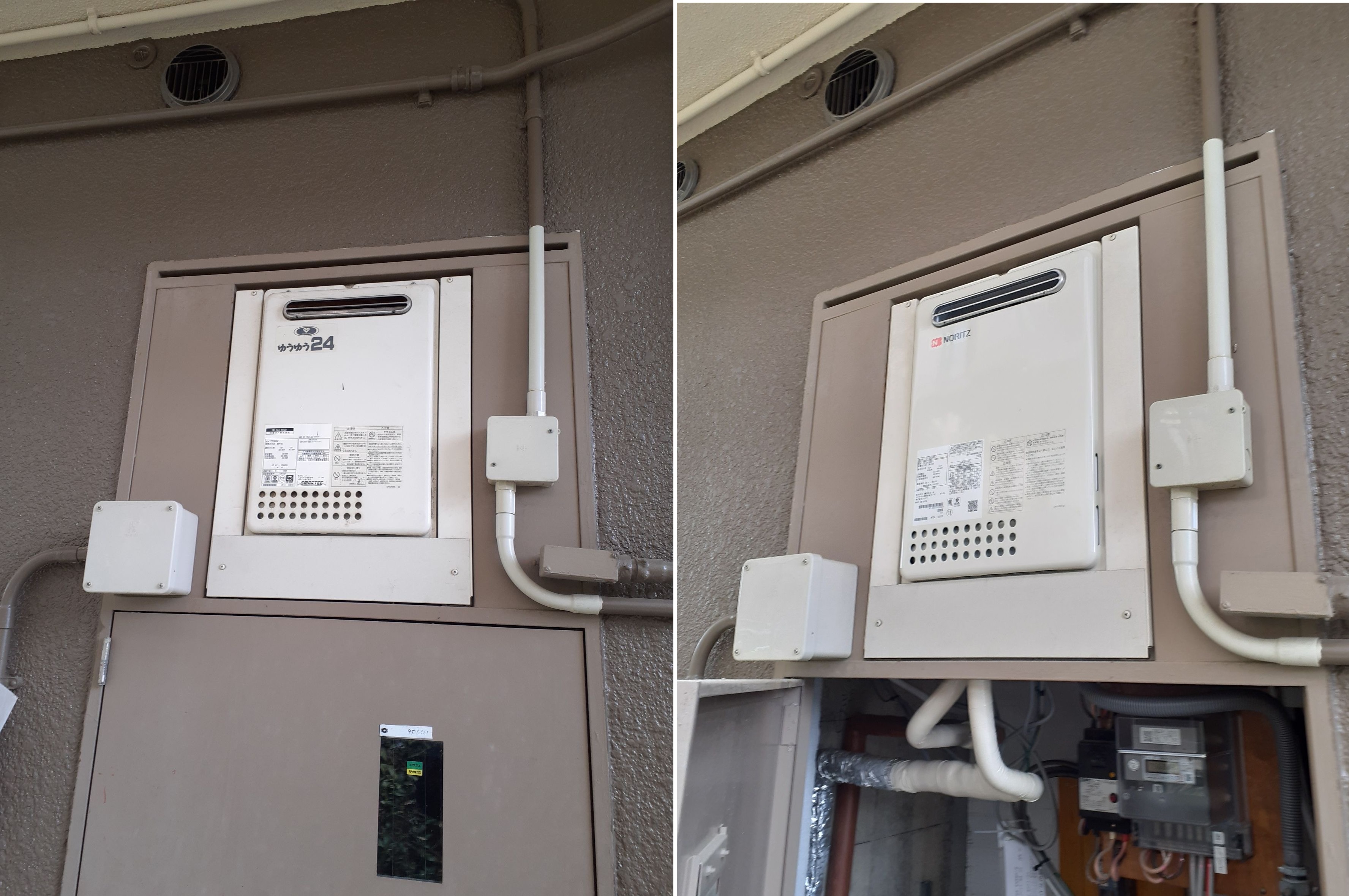 今回大阪ガス製の24号給湯器より、ノーリツのGQ-2439WS-1への交換でした。