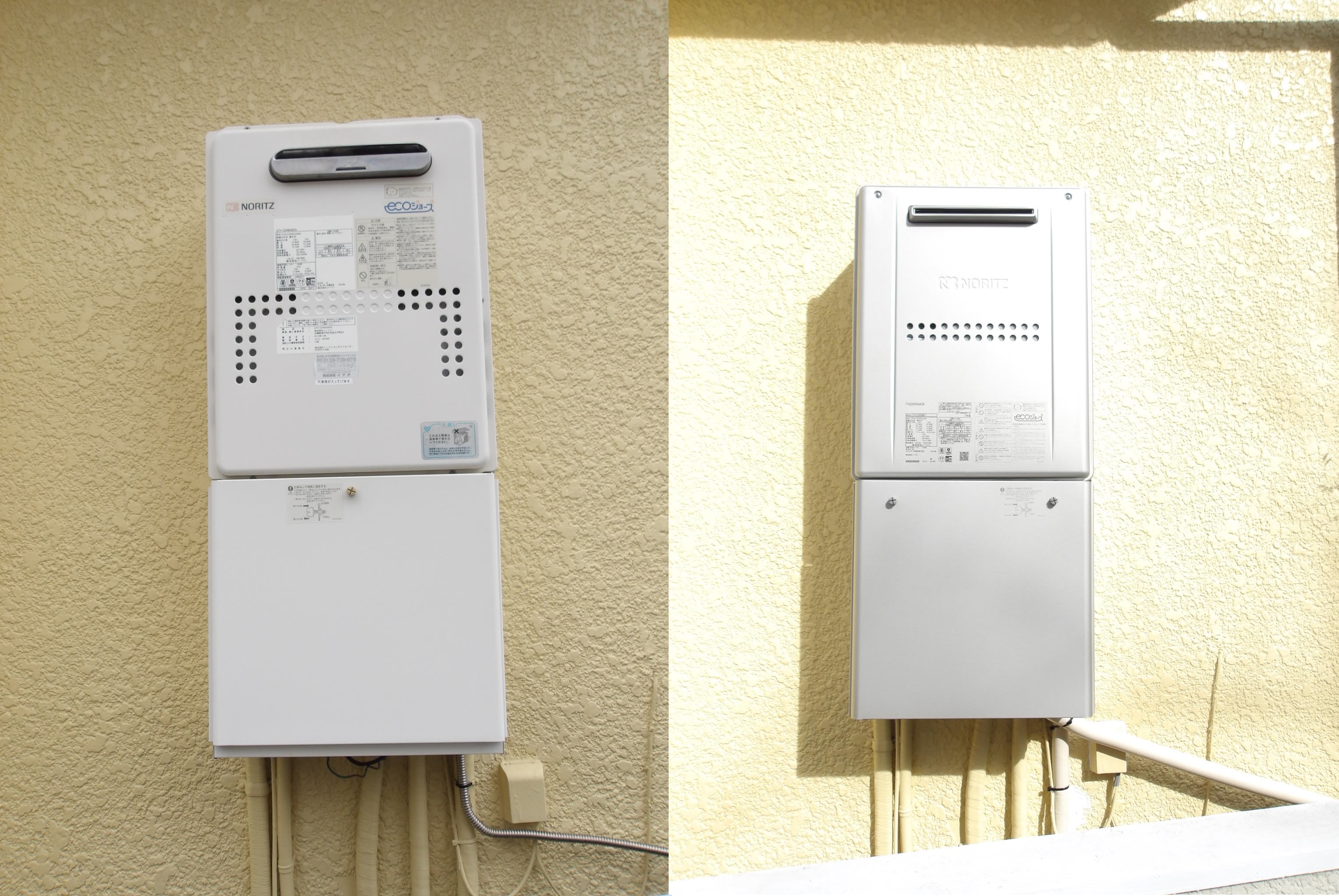 今回ノーリツの暖房付きエコジョーズでGTH-C2446AWXD(2012年製)より、GTH-C2459AWD-1(10年修理保証付き)への交換となりました。