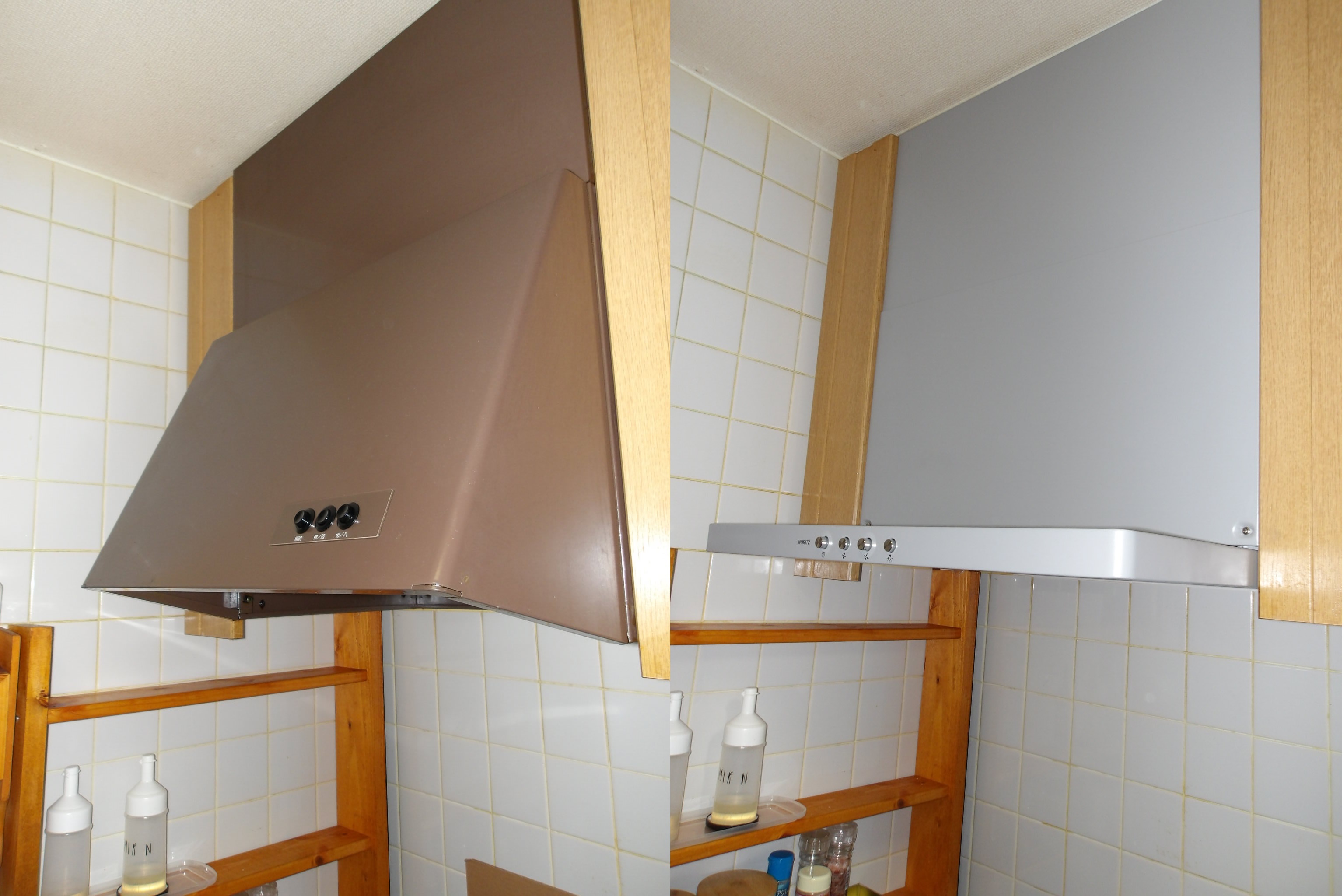 スリム形ノンフィルターレンジフードとガスビルトインコンロ(メタルトップ)の交換