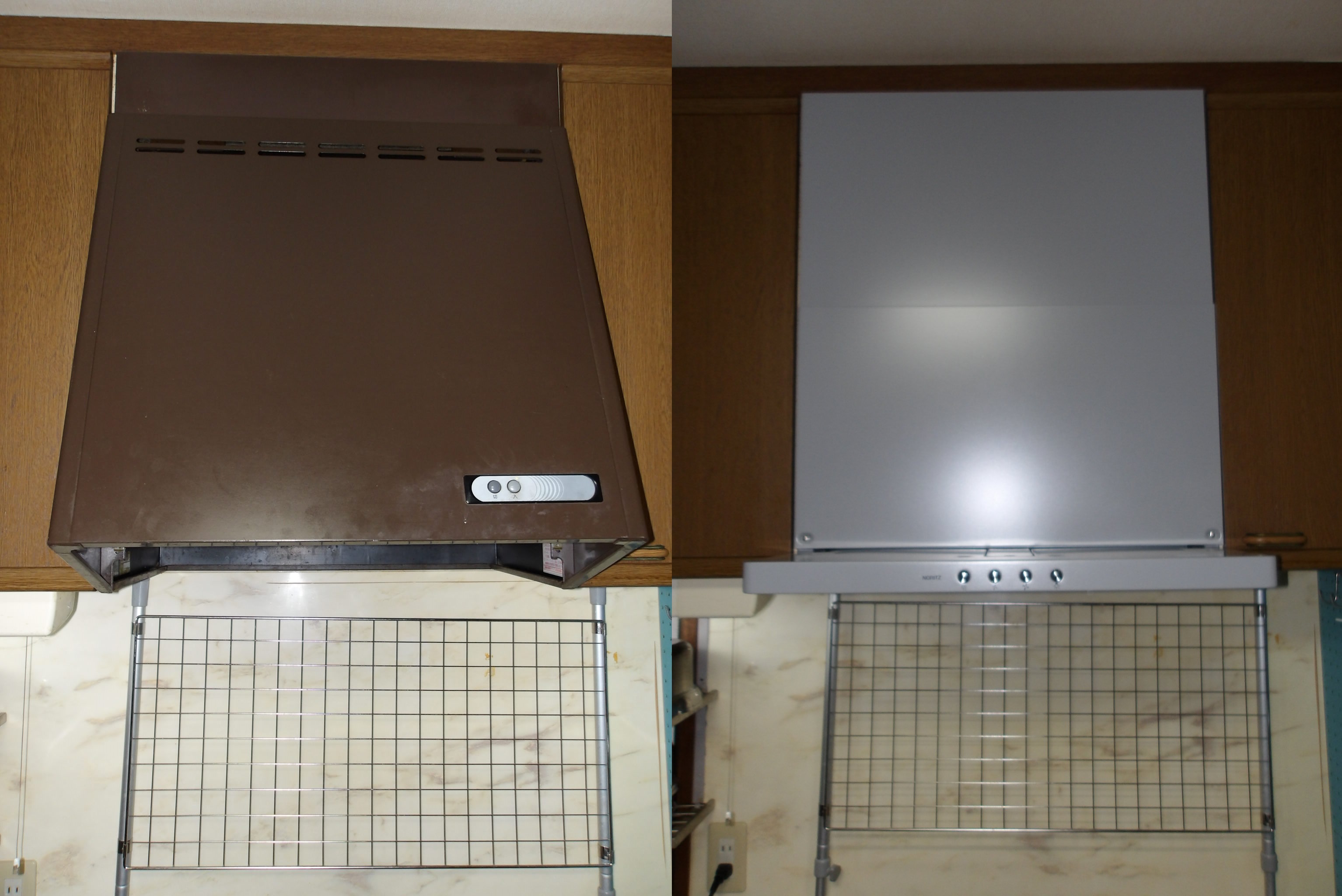 今回のご依頼は、お客様より「キッチンのプロペラ換気扇で電源を入れると大きな音がします。油汚れがたまっていて古くなったので交換をしてほしいです」との事でご連絡をいただきました。