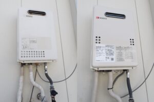 既設給湯器はベランダ設置タイプの16号給湯器で、同メーカーの後継機種でお見積もりを作成しご案内、ご注文をいただきましたので交換となりました。
