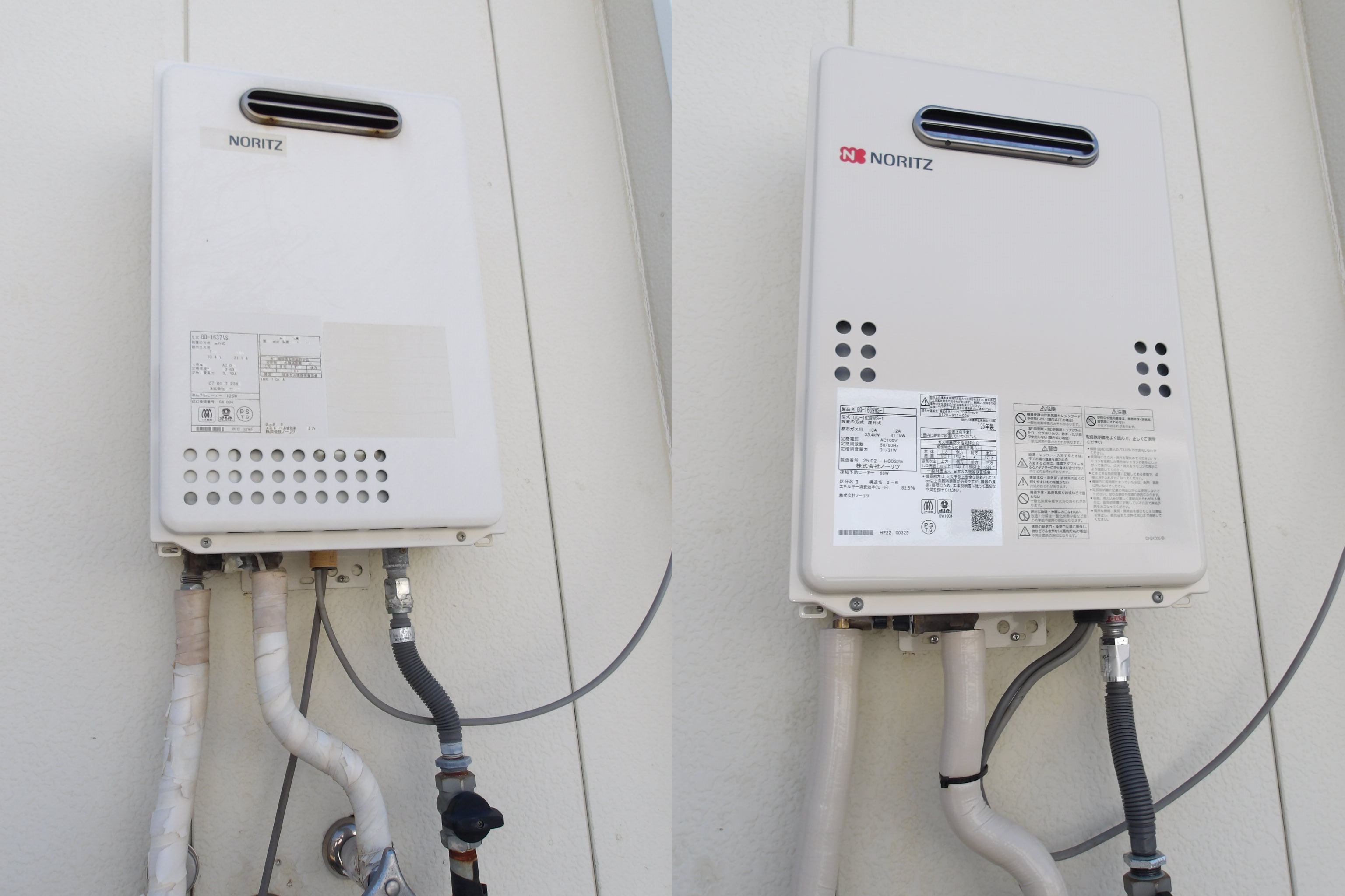 ノーリツ給湯器のGQ-1637WSより、後継品のGQ-1639WS-1へ交換