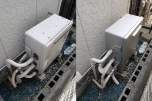 芦屋市戸建てにて、水漏れしている給湯器の交換でした