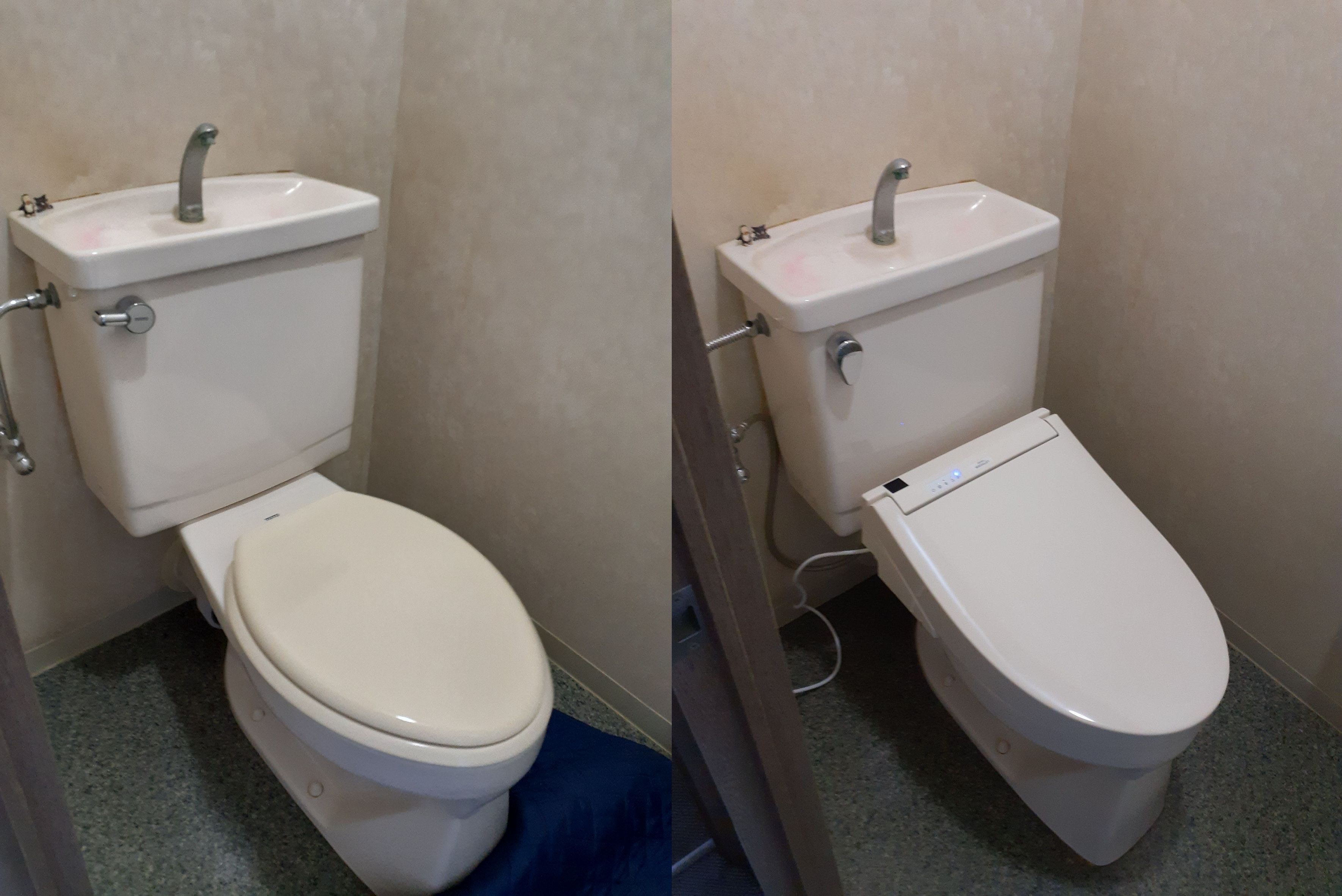 TOTO普通便座より、リモコン洗浄付きのウォシュレットへの交換
