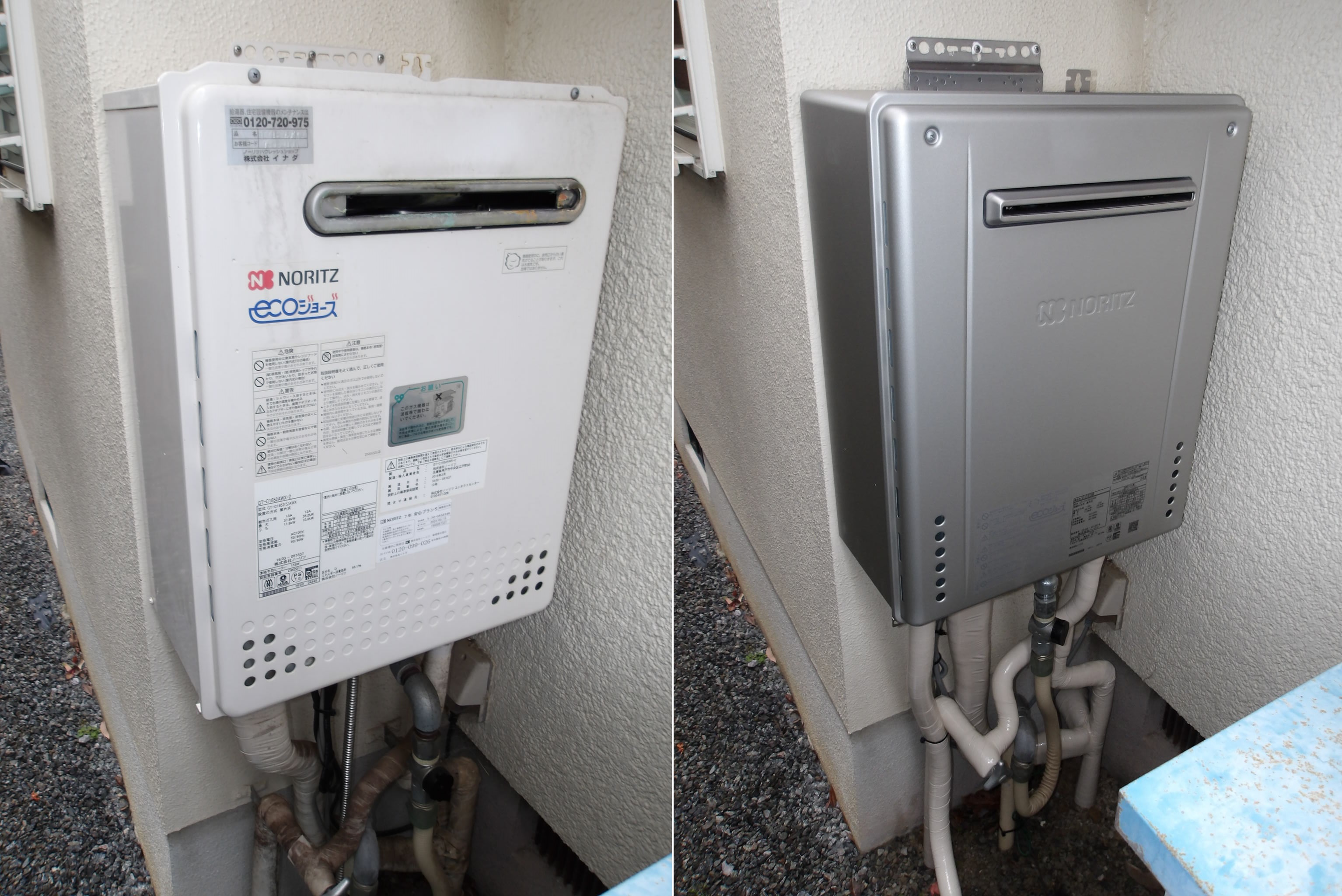 ノーリツ製エコジョーズのGT-C1652AWXより、後継機種のGT-C1672AW(10年修理保証付き)へ