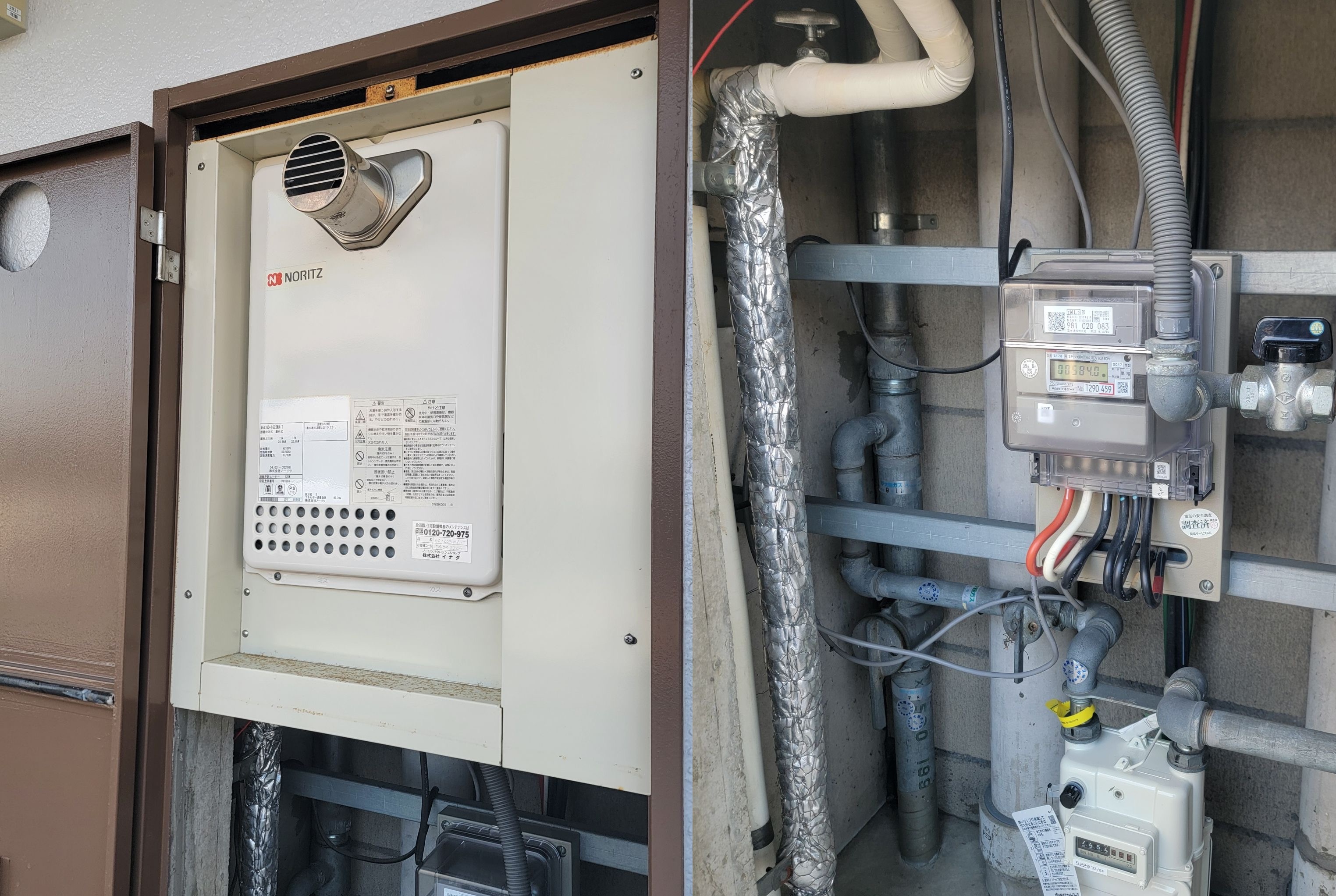ご使用いただいている給湯器は設置後20年ほど経過の為、オーナー様へ寿命時期説明と新しい給湯器への交換の提案をさせていただき、当日交換となりました。