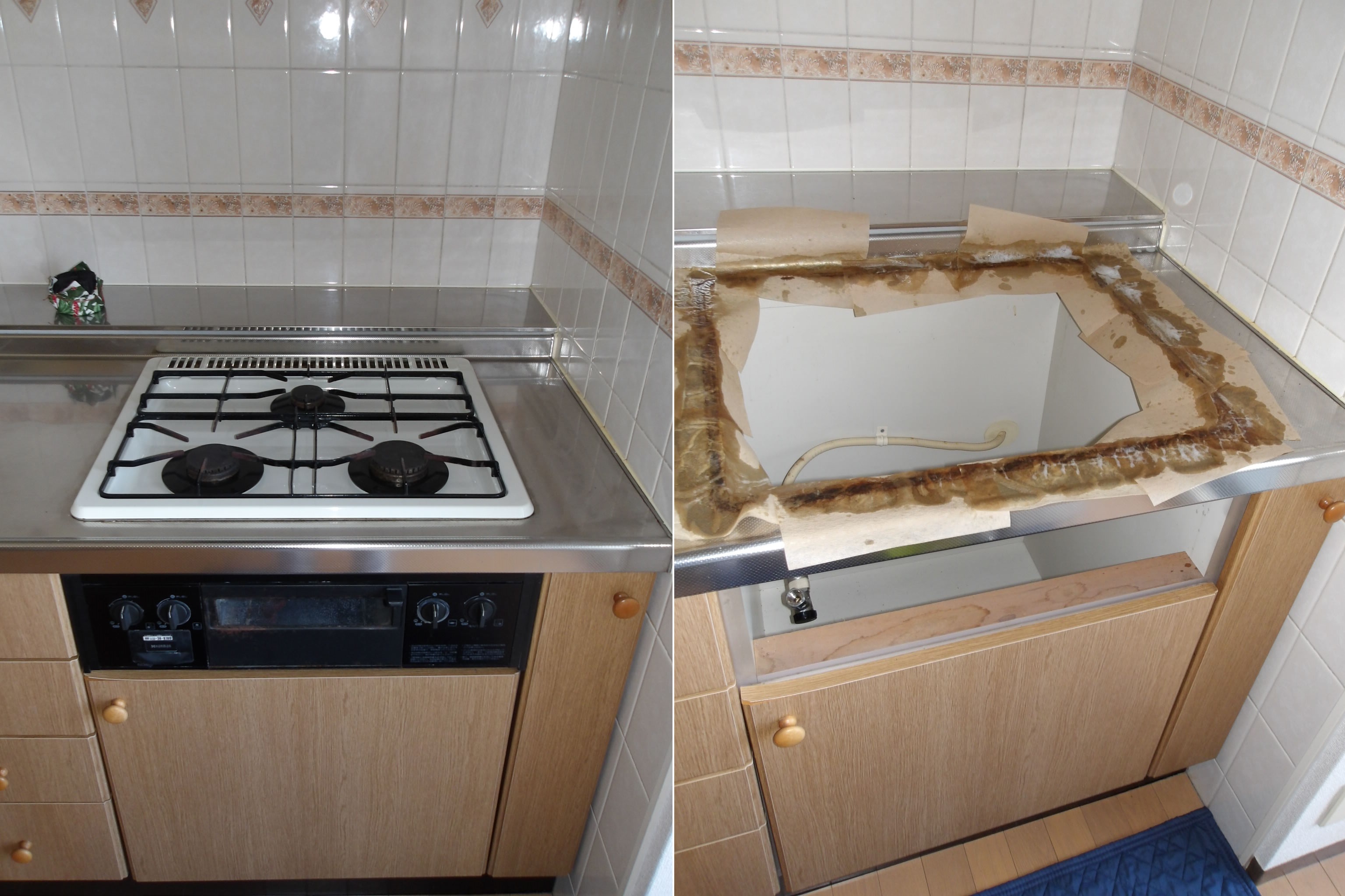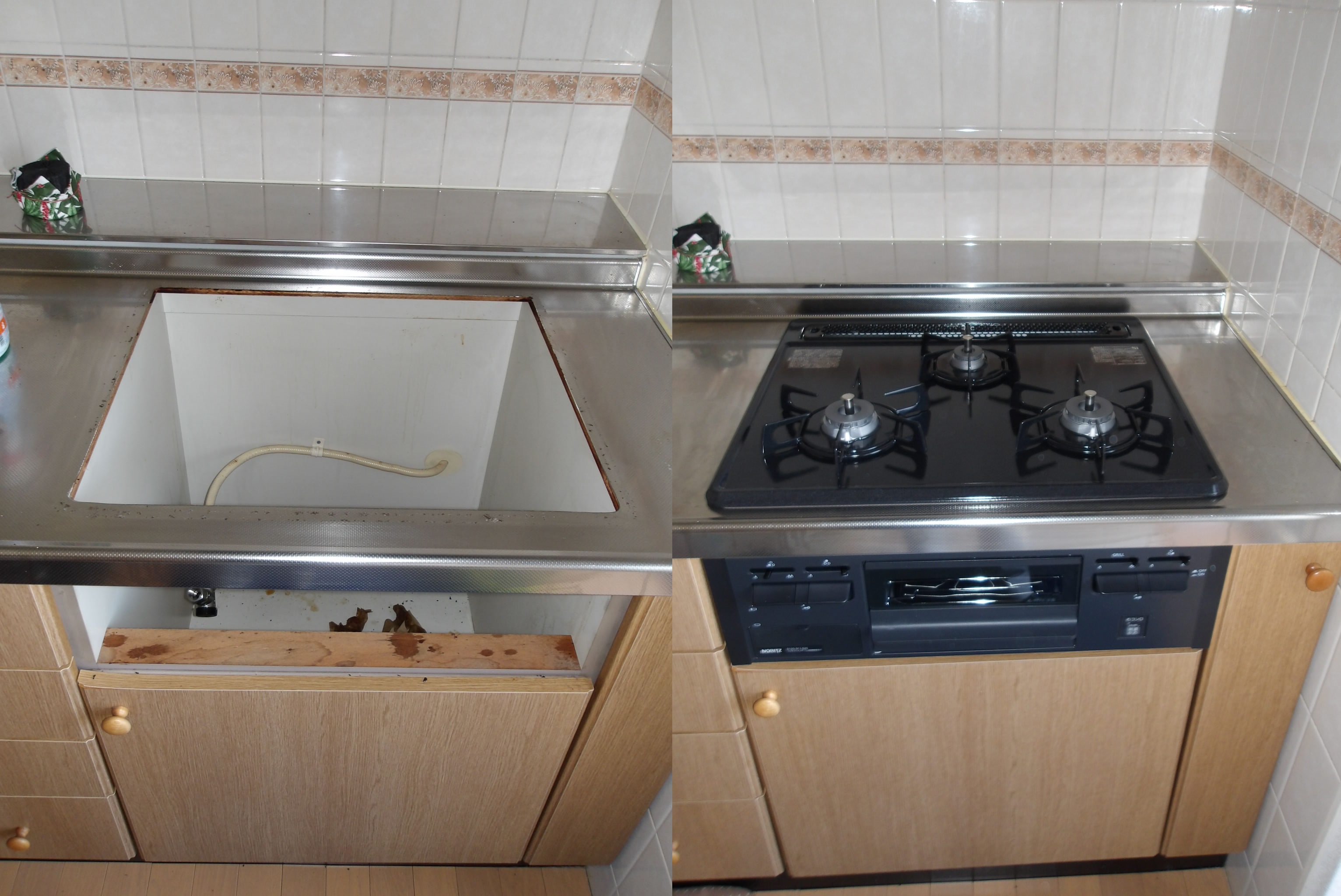 宝塚市の賃貸ハイツで、ビルトインコンロの取替でした