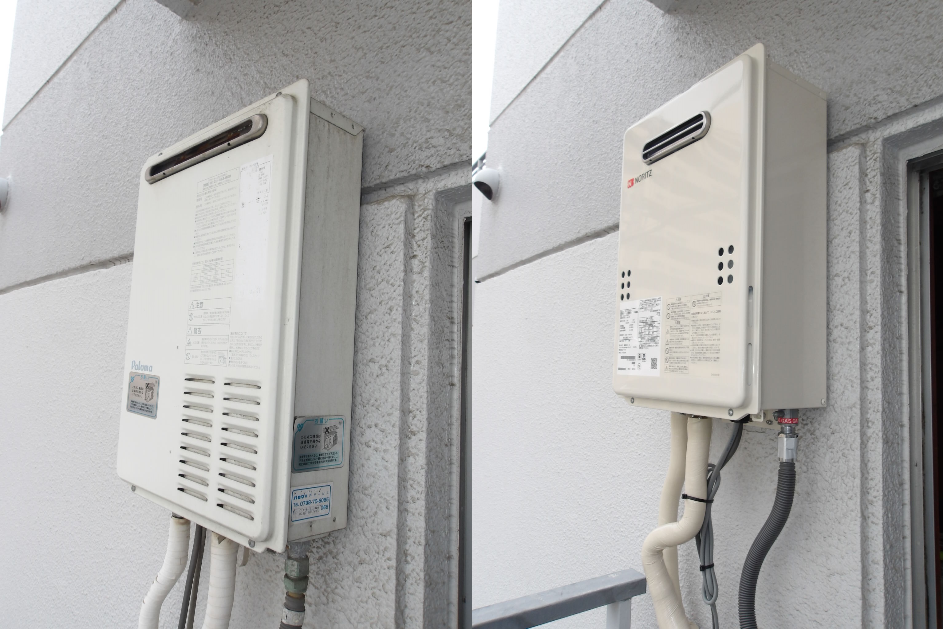 西宮市にて、暖房付き給湯器から給湯専用給湯器に取替しました