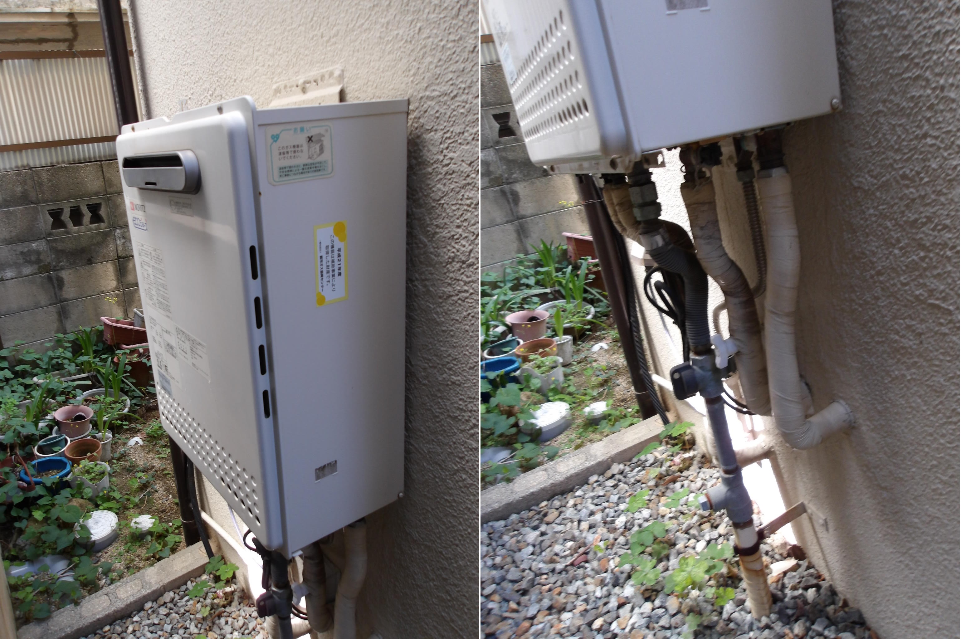 リンナイ給湯器のRUX-1611WOより、ノーリツのGQ-1639WS-1へ交換