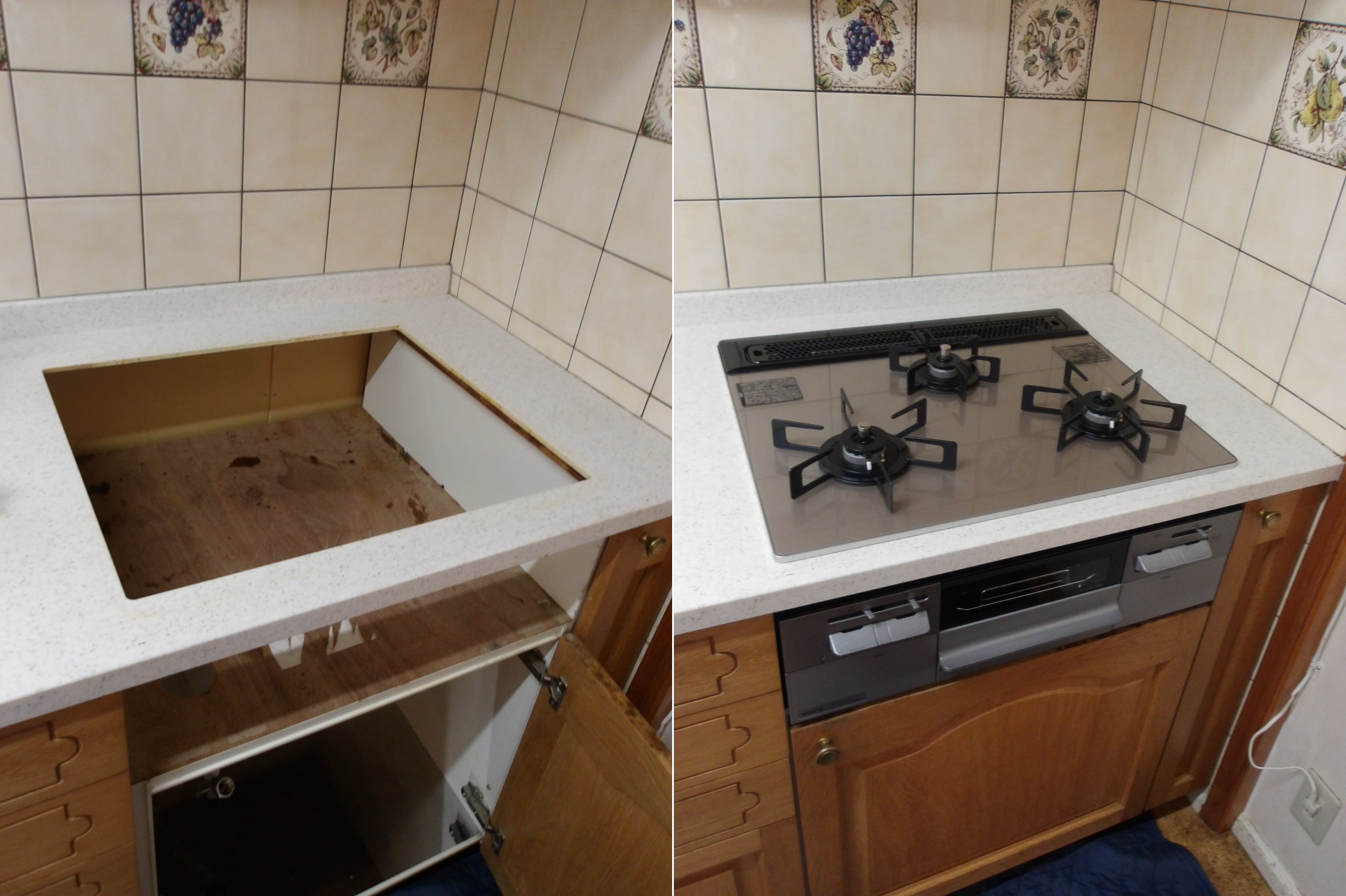 宝塚市で、不完全燃焼のビルトインコンロの取替でした