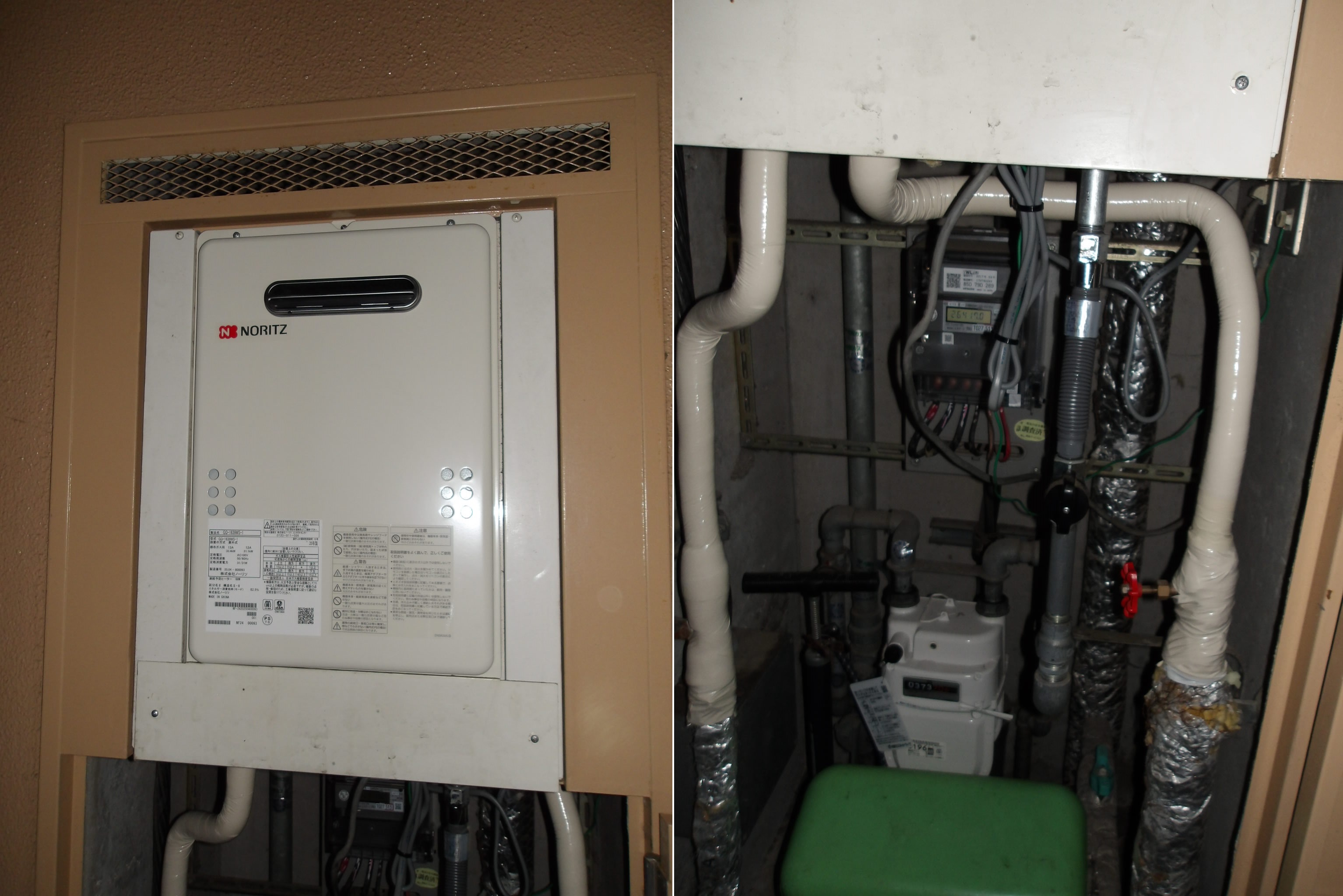 ノーリツのガス給湯器でGQ-1639WS-1の10年保証付きへの交換