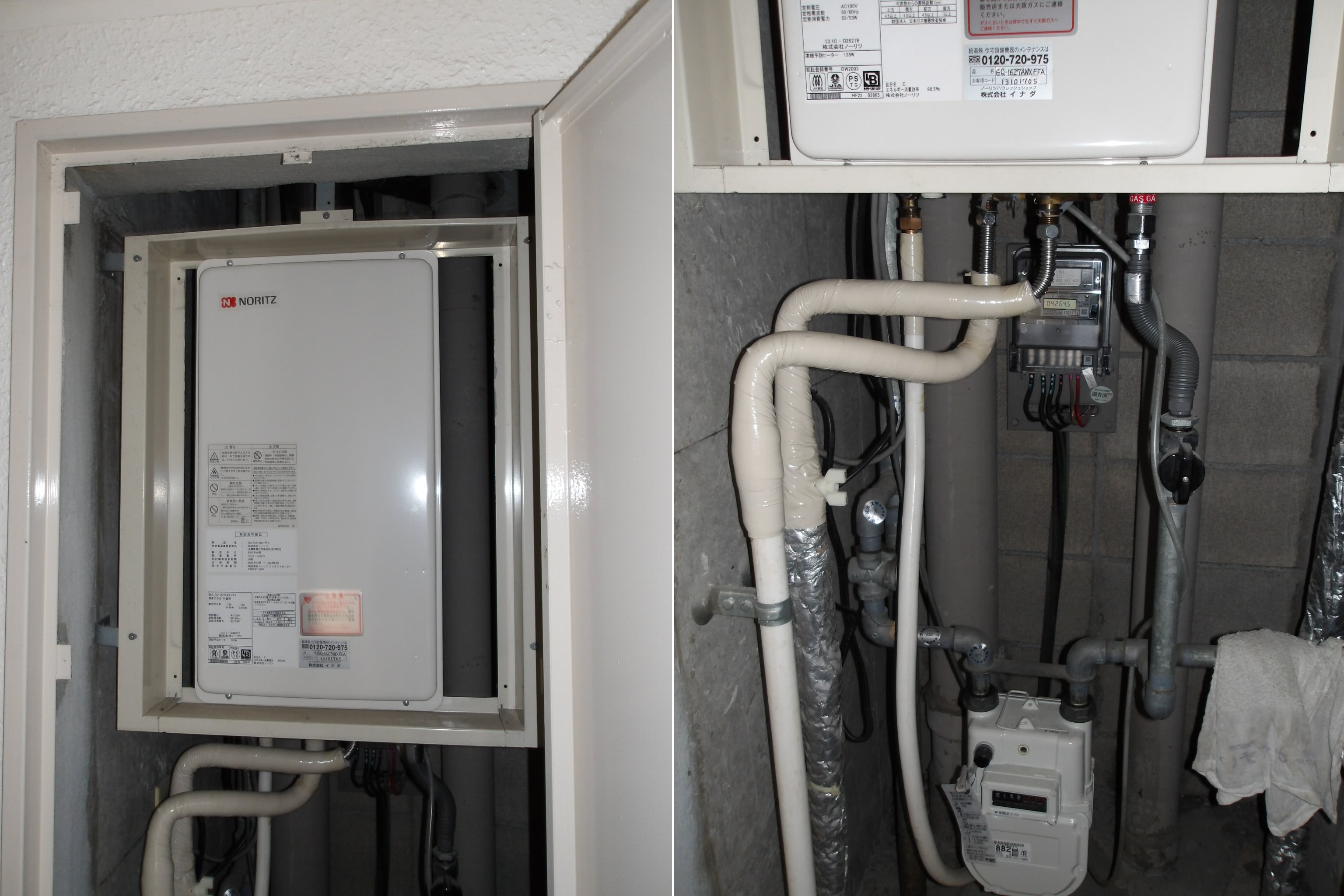 ノーリツ製GQ-1627AWX-FFAより、後継機種GQ-1627AWX-FFA-DXへ