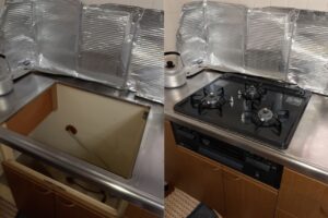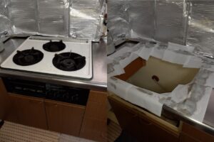 ビルトインコンロも簡単に使用できるものがいいとおっしゃられたので、ノーリツ製のN3GT2RVQ1へ交換となりました。