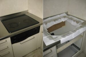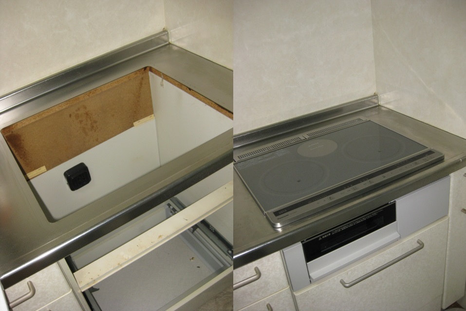 尼崎市の戸建てで、IHビルトインコンロの取替工事でした。
