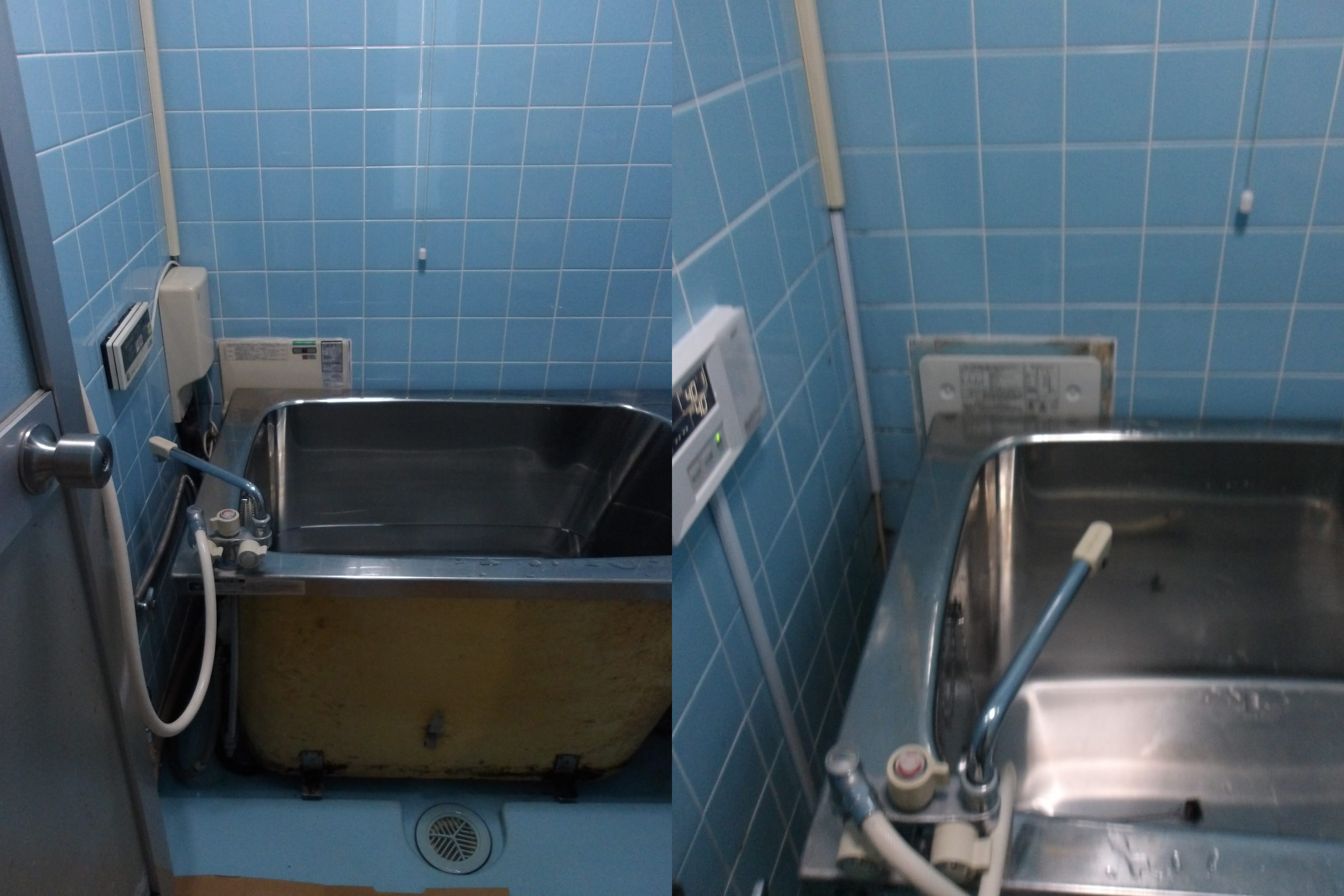 浴室内の古い給湯器の取替