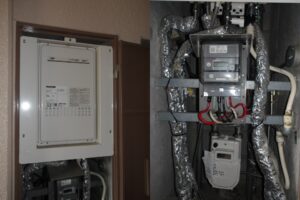 川西市マンションにて、水漏れしている給湯器の交換