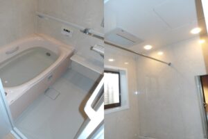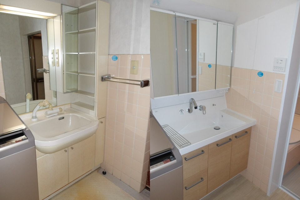 在来浴室と洗面脱衣室のリフォーム ユニットバスと洗面化粧台の取替
