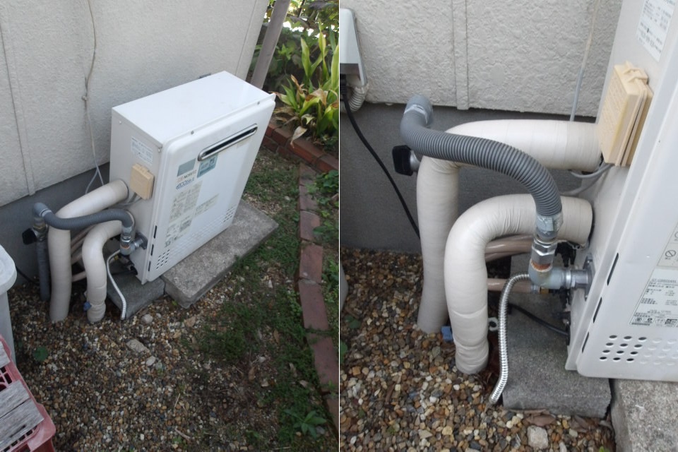 今回のご依頼はお客さまより「お風呂のリフォームを考えています。その時に給湯器も10年過ぎているので新しく交換しようと思ってますので見積りお願いします」とご連絡いただきました。現在の設置状況を確認にお伺いし、現在使用中のものと同じものでお願いしますとの事でしたので、後継機種でお見積りしご注文をいただきました。