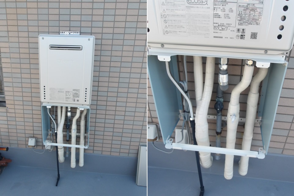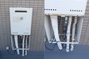 ノーリツ16号後方排気延長形給湯器のGQ-1627AWX-TBより、リンナイRUJ-A1610B(A)の10年間メーカー修理保証付きへ