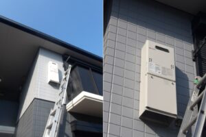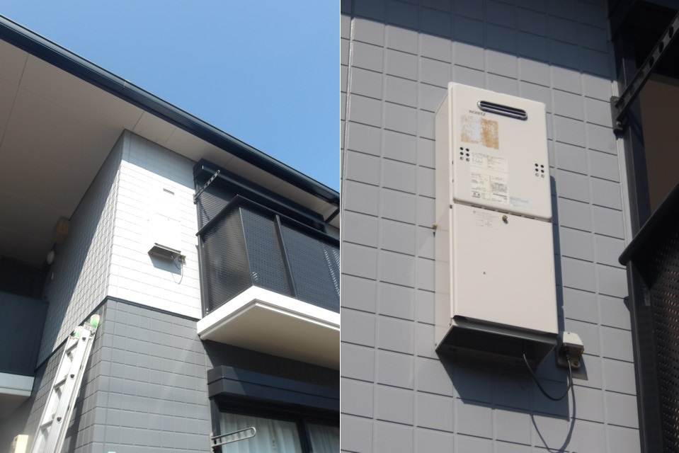 今回のご依頼は賃貸管理会社さまより「退去されたお部屋の給湯器が古いので、次の入居までに新しく交換してください。給湯器が2階壁に設置されているのでハシゴが必要です」とご連絡いただきました。