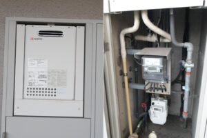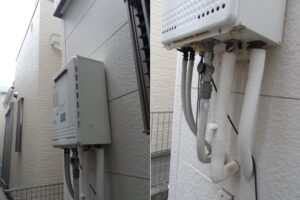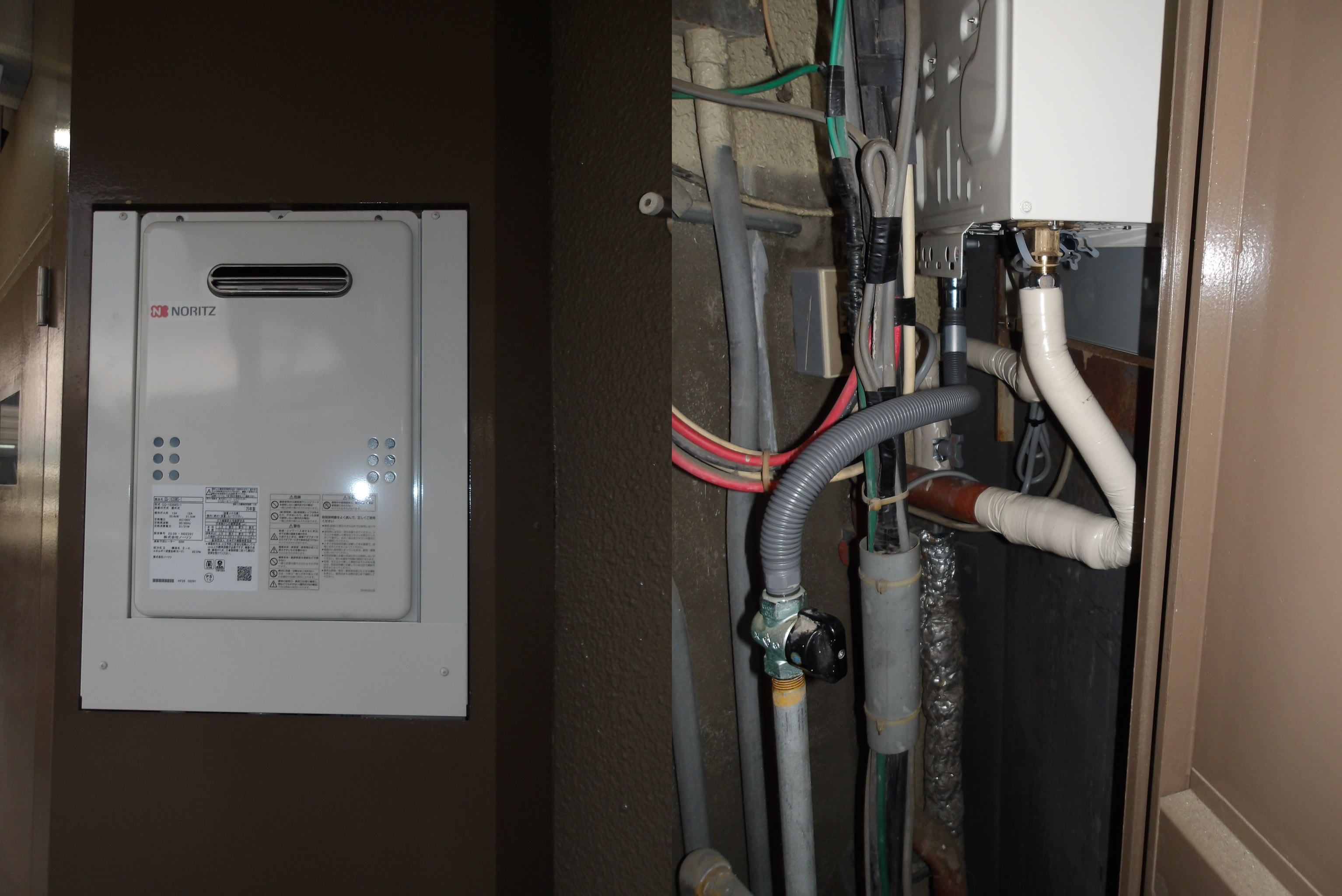 お伺いし現在ご使用中のものを拝見させていただきました。給湯器もトイレもご使用されているものと同等品をご希望されましたので、ノーリツ製16号給湯器とINAX製アメージュ便器リトイレをご注文いただきました。