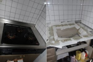 今回お客様より「30年ほど使用したキッチンのレンジフードとビルトインコンロの交換をしたい」とご連絡をいただきました。