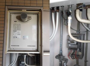 訪問し確認しますと、お湯を出してしばらくすると電源が勝手に切れて水になる状態でした。今回リレー基盤の不具合が原因でしたが、給湯器も2009年製でしたので管理会社様に給湯器の寿命年数が経過している事をお伝えし、新しく交換をご提案いたしました。管理会社さまから、メーカー問わず同等品での交換でお願いしますとご注文いただきました