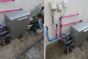 お使いの給湯器は1993年製の給湯器で部品が廃止となっているため、お修理不可であることをお伝えし、交換をご提案させていただきました。お客さまも32年も使用されてたことに驚いており、そんなに経ってたら修理は無理ですね、とご注文をいただきました。