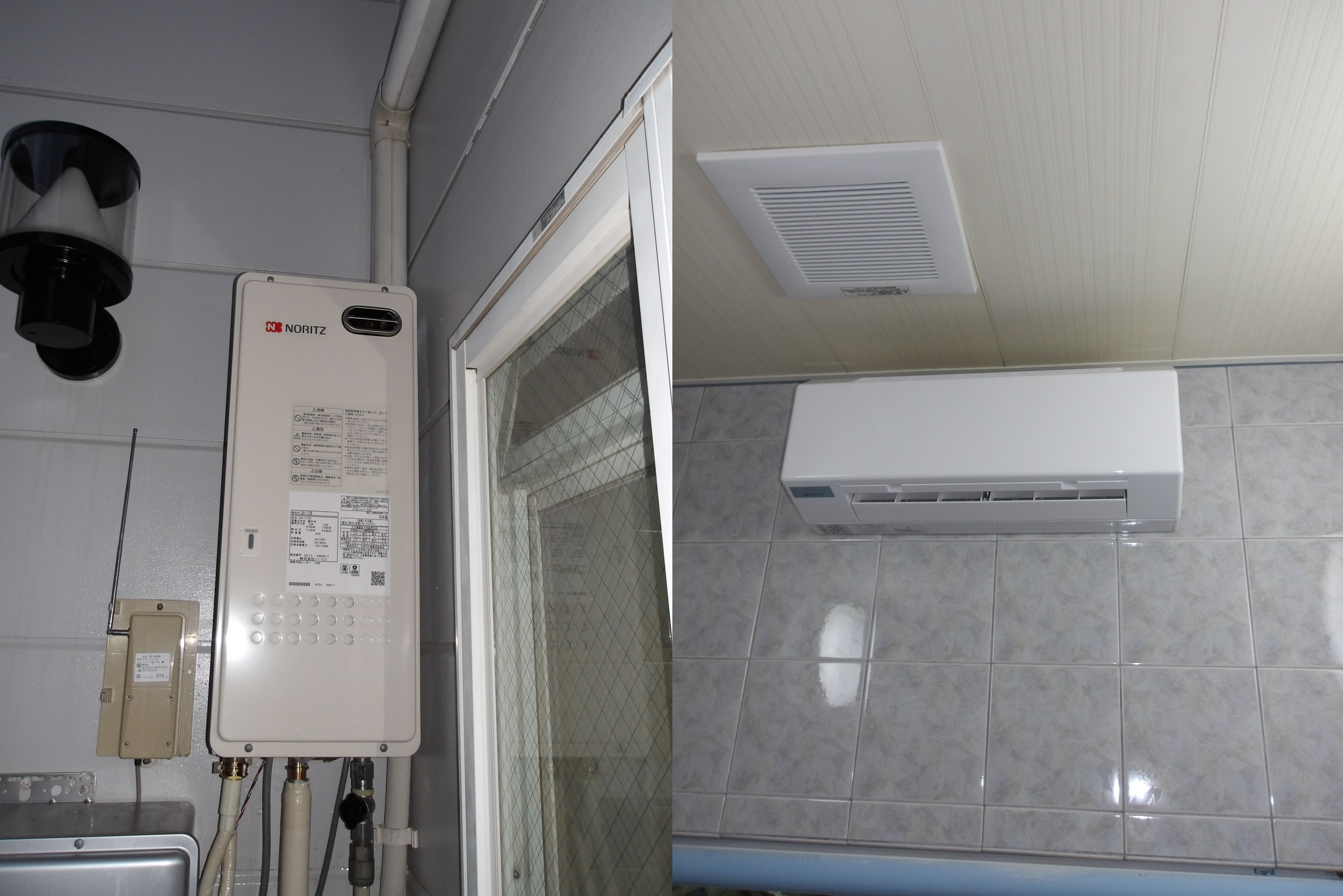 ノーリツ浴室暖房器のBDV-4109WKNとガス温水暖房熱源機のGH-712W