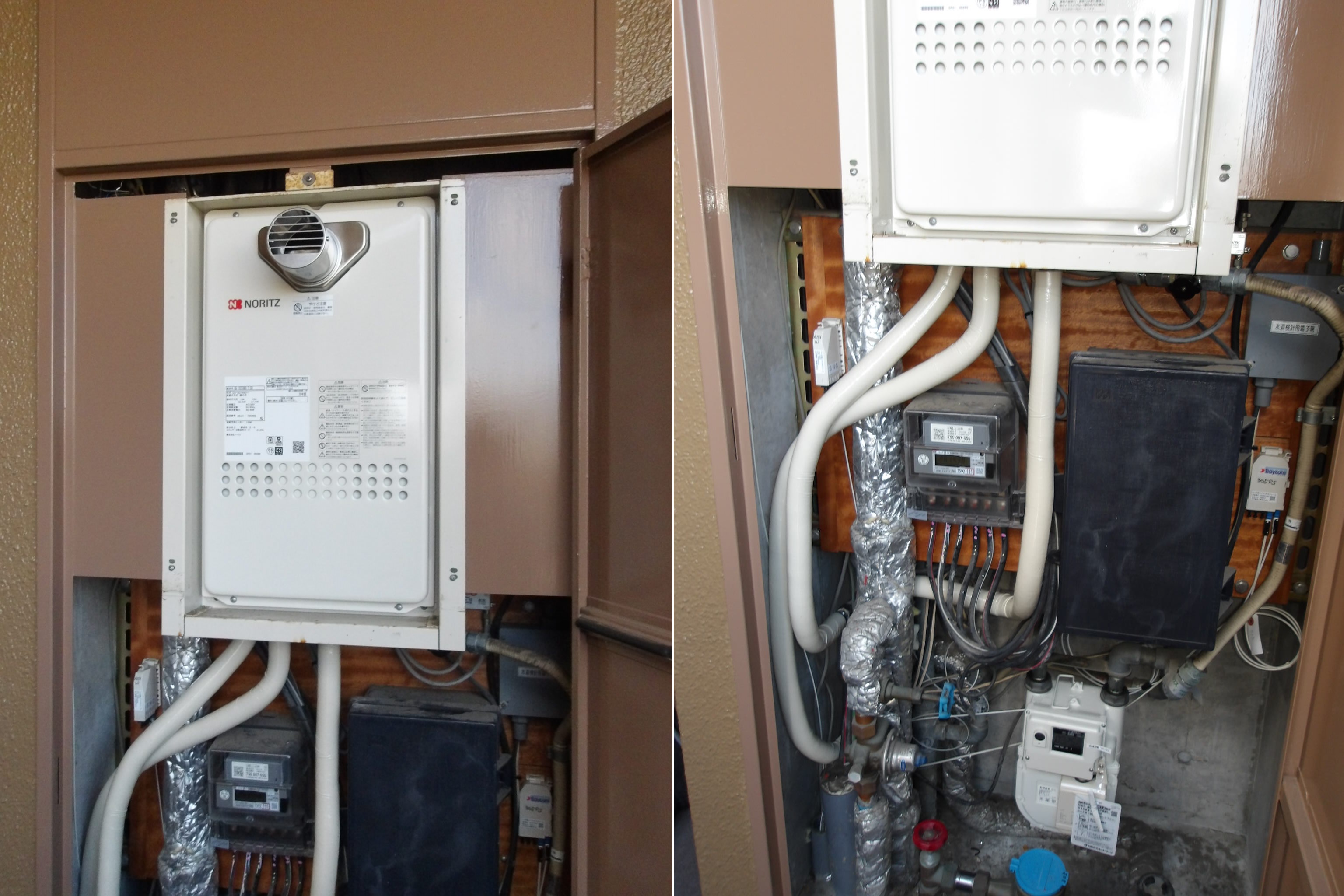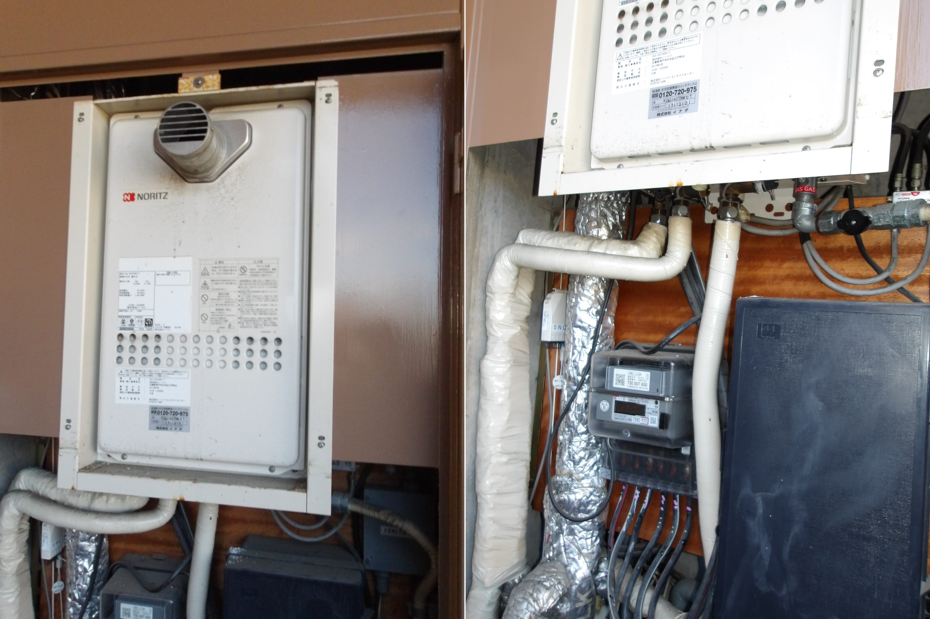 お伺いしますと、アダプターから漏れている状態で水メカの故障でお湯の通路が閉じなくなっておりました。お客さまに状況説明させていただき、給湯器も13年使用されてるので新しく交換もご提案させていただきました。お客さまも今修理してもまた違うところが故障すると困るので、この機会に新しく交換して下さいとご注文をいただきました。ついでにコンロも古いので一緒に交換してくださいと2口コンロのご注文もいただきました。