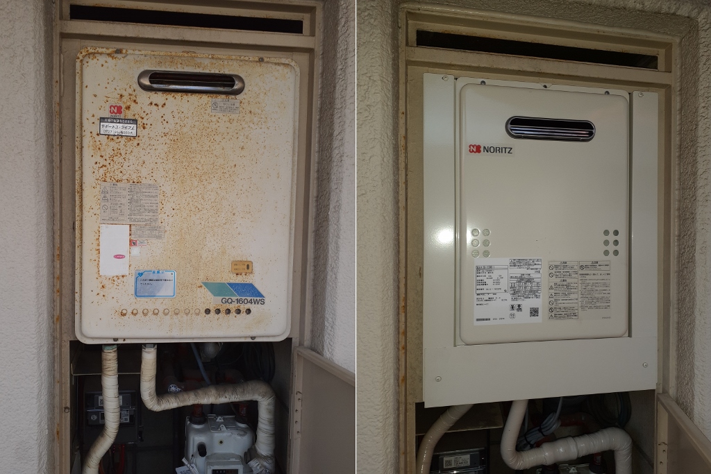 今回ノーリツ製の16号ガス給湯器のGQ-1604WSより、後継のGQ-1639WS-1への取替でした。