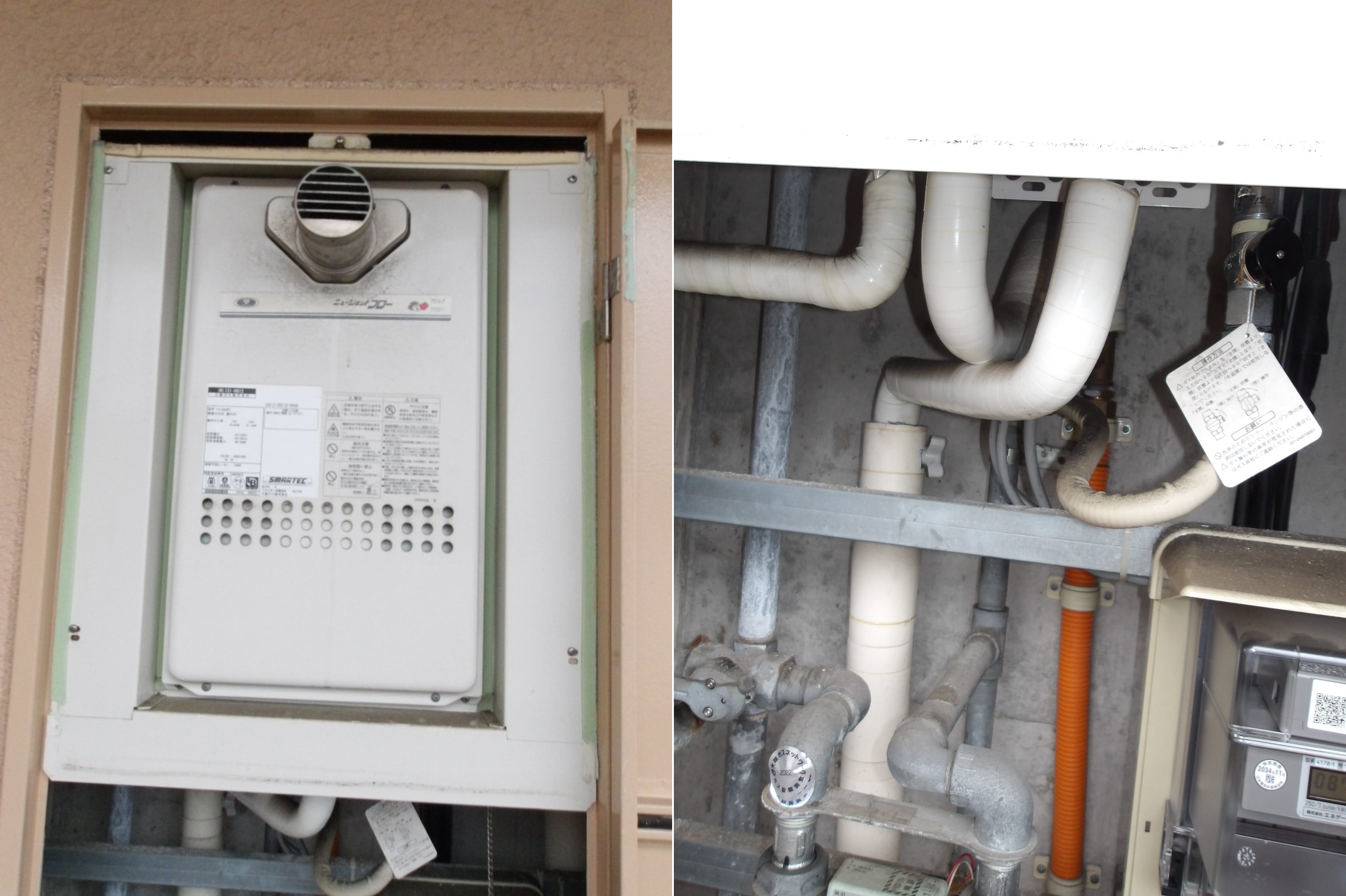 お客様へ不具合状況の原因と、製造年が2010年でご使用15年以上経過していることを説明、新しい給湯器への交換をご提案させていただきました。