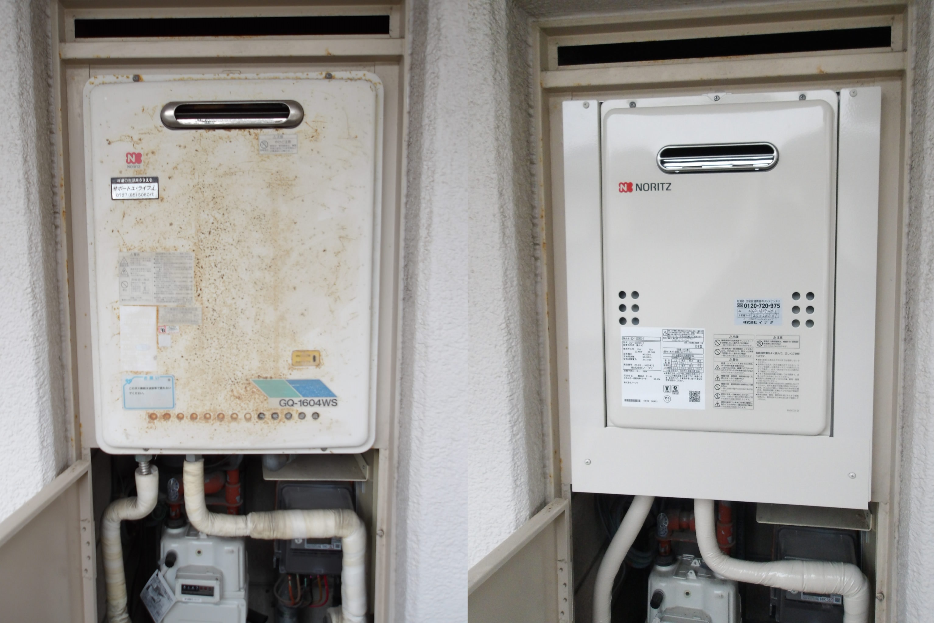 機種はノーリツ製GQ-1604WSより、後継機種のGQ-1639WS-1への交換でした。