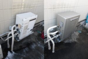 既設給湯器は従来型のガスふろ給湯器でしたが、今回同じグレードのエコジョーズタイプでのご案内となりました。