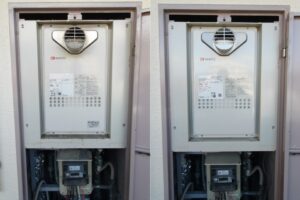 西宮市のマンションで、24号高温水供給式給湯器(PS設置形)の交換をいたしました。