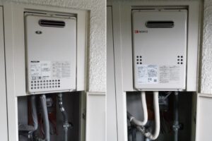 機種は大阪ガス製の16号給湯器より、ノーリツ製の代替品のGQ-1639WS-T-1への交換となりました。