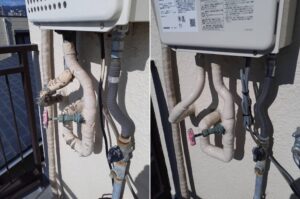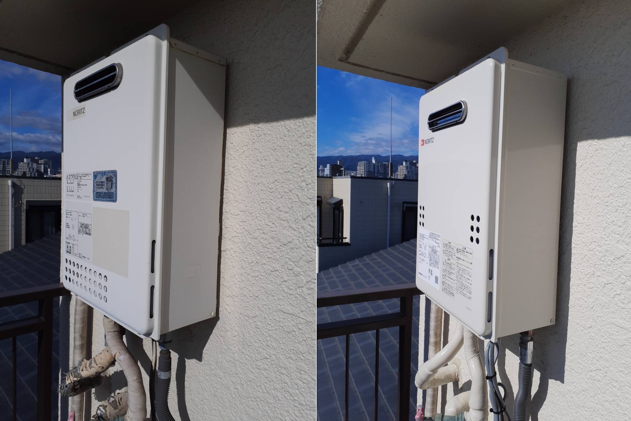 西宮市の賃貸物件で、壁掛けタイプ16号給湯器のお取替でした。